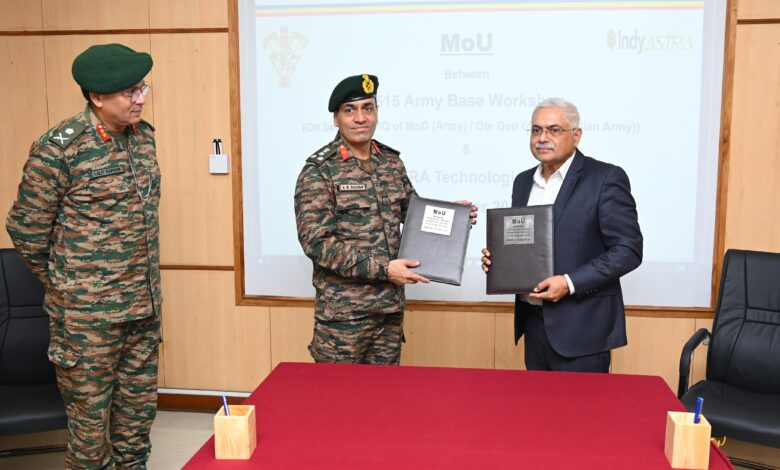 515 Army Base Workshop (ABW) (on behalf of IHQ of MoD (Army)/ Dte Gen of Electronics and Mechanical Engineers and IndyASTRA Technologies Pvt Ltd have signed an MoU to fast-track Al-enabled drone capabilities for Indian Army Land Systems The partnership aligns with operational imperatives and the vision of Atmanirbharta. The collaboration will be coordinated through 515 ABW.