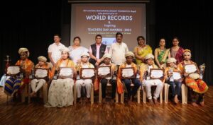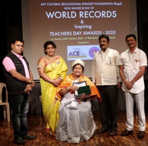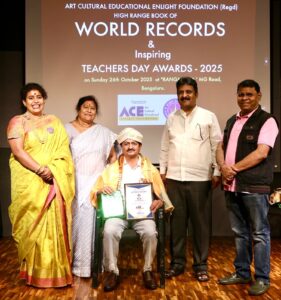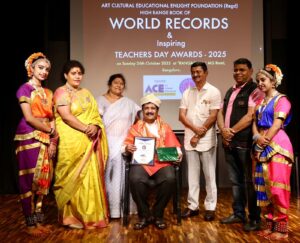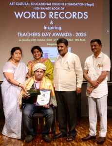 Chief guests included G Padmavathi, former Mayor of BBMP and President of the Karnataka State Women’s Development Corporation; senior journalist Shivakumar Bellithatte; K.T. Chandru, Director of the Vishwa Vokkaliga Trust Sangha and eminent historian Talakadu Chikka Rangegowda. The dignitaries felicitated teachers who have excelled in various fields yoga, art, culture, social discipline, and extra-curricular activities, while also acknowledging world record participants.