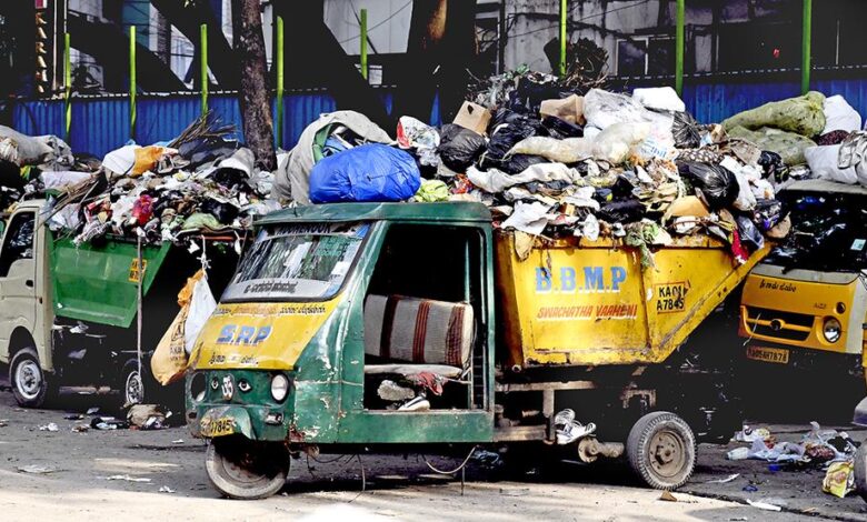 Bangalore had earned the “Garden City’ title due to its lush parks, pleasant climate, and abundant trees planted over centuries, but it has transformed into “Garbage city” stems from a massive surge in waste generation (1750% increase in 15 years) outpacing infrastructure, leading to unsegregated garbage piling in “black spots” inefficient collection, and inadequate processing, causing public health issues, environmental blight, and traffic disruption, despite solutions like mandatory segregation and decentralized management being available but poorly implemented. In Bengaluru, the Bruhat Bengaluru Mahanagara Palike (BBMP) oversees waste management, with its Bengaluru Solid Waste Management Limited (BSWML) subsidiary specifically handling door-to- door collection via contractors, ensuring segregated waste (wet/dry) is picked up by Pourakarmikas (sanitation workers) using pushcarts/autos, though implementation varies by area, with BBMP also managing street cleaning and public health aspects of sanitation. BBMP collects around 5,000 to 6,000 tonnes of waste daily in Bengaluru, with a significant portion collected door-to-door. However, the exact daily door-to-door