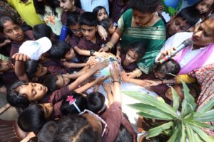 The program included Bharatanatyam, painting, speeches on Earth, etc. Addressing the program, the organization’s founder Ambika C, along with Pushpavathi R and teachers, spoke on environmental conservation topics such as the habit of growing plants and trees, the importance of the five elements, environmental protection, pollution control, plastic-free living, and judicious use of water, and created awareness among the children.